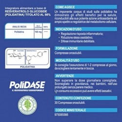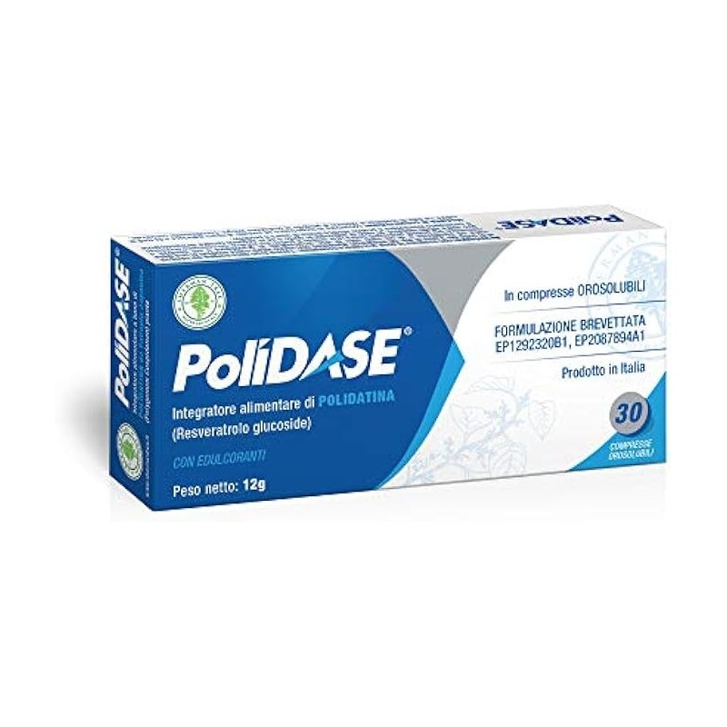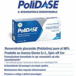 ✔ESTRATTO BREVETTATO PURO AL 98%: Il Polidase contiene un estratto puro brevettato di Polidatina, una fitoalessina che è un precursore del noto stilbenoide Resveratrolo, in forma orosolubile con un’ottima tollerabilità a livello gastrointestinale e con qualità farmaceutica di purezza al 98% estratta da Fallopia japonica (Poligonum Cuspidatum). ✔FORMULAZIONE PROTETTA DA 2 BREVETTI INTERNAZIONALI: l’innovativa formulazione in compresse orosolubili protetta da 2 Brevetti internazionali consente l’assorbimento tramite la mucosa orale, escludendo sia il passaggio nello stomaco sia il metabolismo di primo passaggio a livello del fegato. ✔ GLI ALTRI BENEFICI DELLA POLIDATINA: la Polidatina riduce il danno dei radicali liberi, blocca all’origine i mediatori infiammatori, modula i fattori dell’immunità naturale, la salute cardiovascolare, la fluidità delle secrezioni bronchiali, la regolarità del ciclo mestruale, il drenaggio dei liquidi corporei, ha un’azione protettiva a livello oculare, ed è un tonico contro la stanchezza ✔ LA POLIDATINA È RESVERATROLO GLICOSILATO, PIÙ ATTIVO: la bassa biodisponibilità del Resveratrolo limita la possibilità di ottenere in vivo gli stessi risultati della sperimentazione in vitro. La soluzione è rappresentata dalla Polidatina in cui la molecola di glucosio, determina un maggiore assorbimento e resistenza all’ossidazione enzimatica rispetto al Resveratrolo ✔ SHERMAN TREE NUTRACEUTICALS UNA REALTÁ CONCRETA NON SOLO SUL WEB: I nostri integratori alimentari sono il risultato di collaborazioni medico-scientifiche, di ricerche cliniche e di laboratorio e sono distribuiti in tutte le farmacie e parafarmacie sul territorio nazionale.